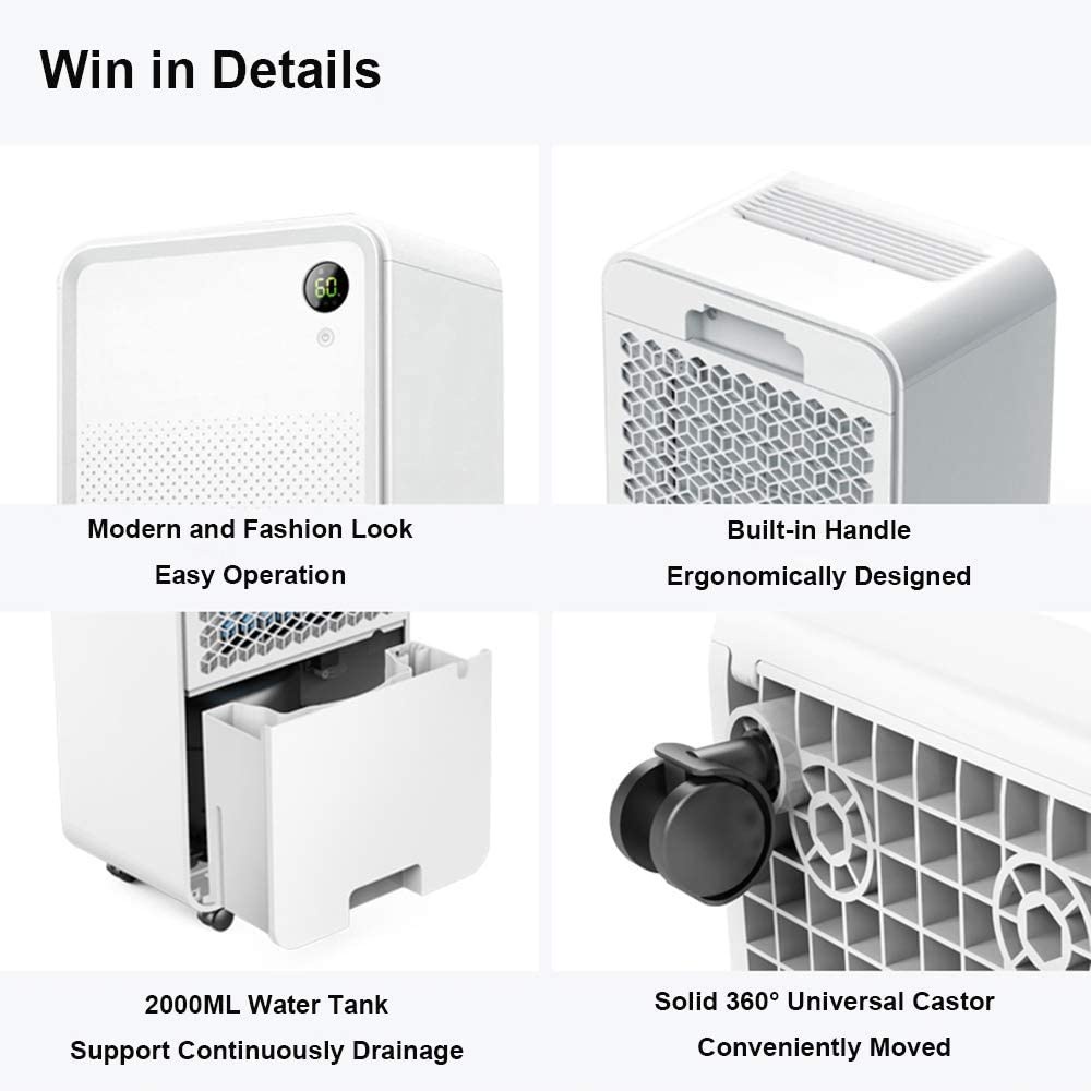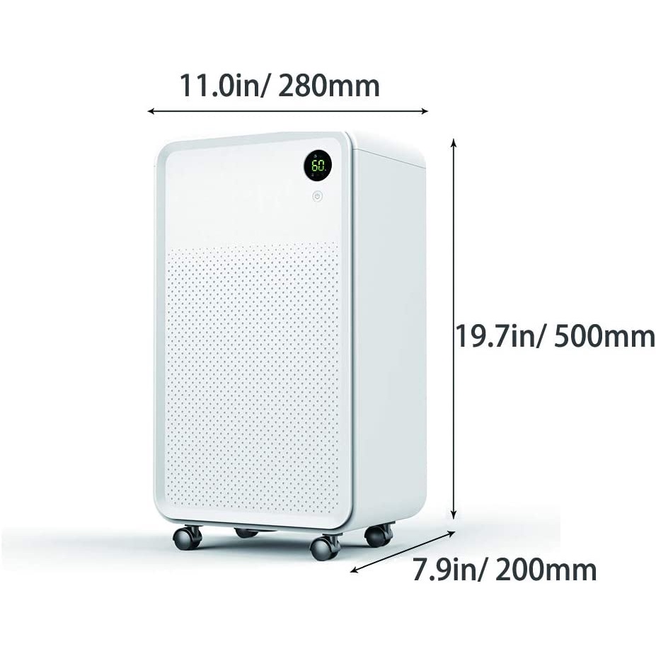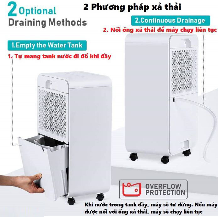 Model: OLS12-BD001E Công suất: 180-270W Kích thước: 28cm x 20cm x 50cm ( có sai số nhẹ) Khả năng hút ẩm: 12 L/ ngày với hàm lượng ẩm 90%, nhiệt độ 30 độ C Tốc độ đối lưu không khí: 120 m3/giờ. Máy hút ẩm Luko có khả năng hút ẩm vượt trội nhờ hệ máy nén cao cấp mạnh mẽ bền bỉ. Máy có thể hút tới 12L nước 1 ngày và thích hợp cho phòng từ 30 đến 80 m2. Ngoài chức năng hút ẩm, máy hút ẩm Luko còn có chức năng lọc không khí, lọc không khí bằng công nghệ ion hiện đại sẽ tạo ra không gian phòng luôn khô thoáng, sạch sẽ, khô ráo, không còn bụi bẩn và ngăn chặn các vi khuẩn nấm mốc. Máy có thể hẹn giờ lên tới 24 giờ, cài đặt độ ẩm như mong muốn, có 4 chế độ hoạt động, 3 màu chỉ thị, 2 tốc độ quạt : Chế độ hoạt động có thể chuyển đổi tự do giữa ngày nắng (60% RH), ngày mưa (40% RH), liên tục / khô (20% RH) và chế độ ngủ. Tính năng xả đá rã đông tự động. Dung tích thùng chứa lớn, tới 2L giúp máy hoạt động được liên tục hơn. Ngoài ra, máy được trang bị ống xả thải giúp cho máy được hoạt động liên tục