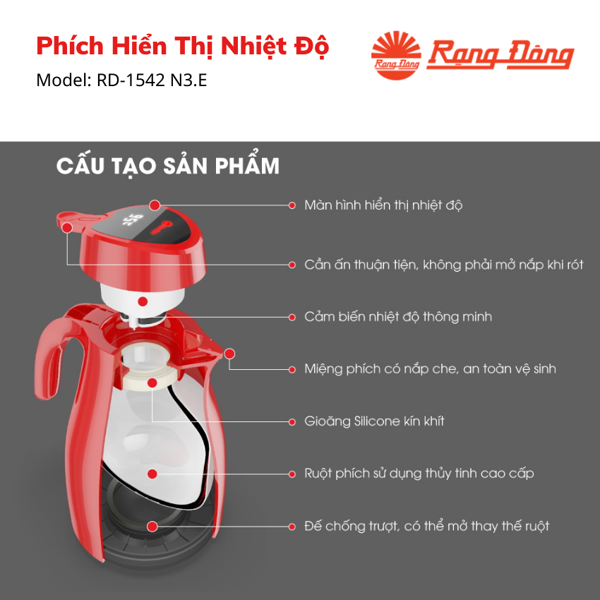 Phích Hiển Thị Nhiệt Độ Thông Minh Rạng Đông - Model: RD-1542 N3.E